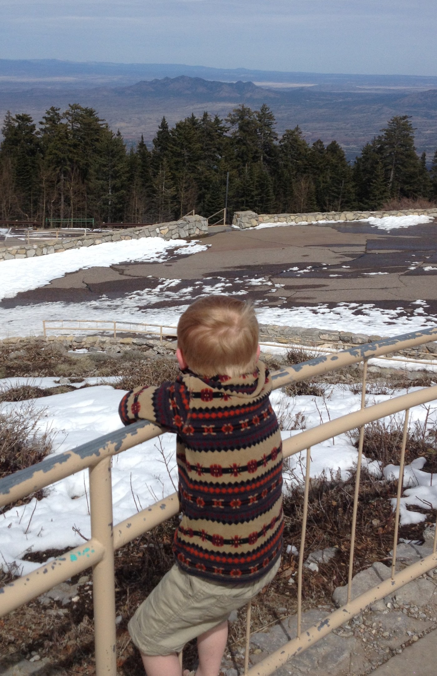 There is one picture, in particular, that I don’t even need to look at anymore because it is always with me, cemented into the back of my brain. My oldest is staring out across the landscape. The back of his strawberry blonde head is to me. His arms are draped over a beige railing in need of paint. His jacket matches the palette of New Mexico.