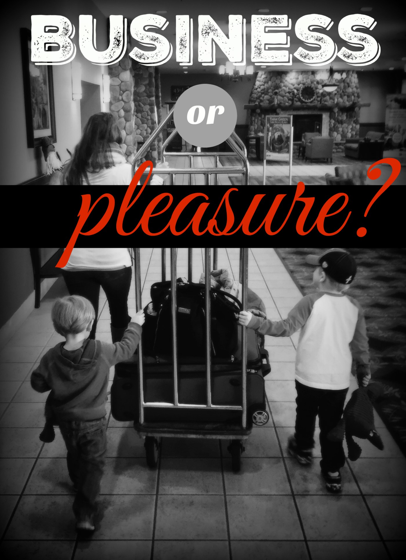 So when the gentleman at the reception desk asks, “Are you joining us for business or pleasure?” I never really know how to respond. It depends on who you ask. For my husband, who compartmentalizes in a way I’ve never been able to, it’s business between the hours of 8 and 5 and then again from midnight to 2 a.m. with a few hours around dinner for playtime. For my kids, the answer is obvious. For me, it feels like a whole lot of work, but nobody’s cutting me a check, so I’d have to answer “pleasure.” Then again, how loosely do you define pleasure?